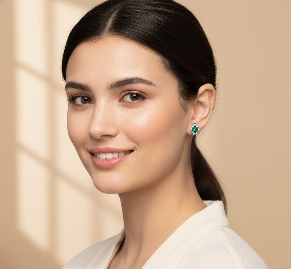 Pt950の冷たく澄んだ輝きとエメラルドの温かみある緑が絶妙に調和し、どの角度から見ても美しく輝きます。フープタイプのデザインは耳に自然に沿い、装着時の安定感も抜群。フォーマルにもカジュアルにも合わせやすく、特別なシーンをより印象的に彩る逸品です。