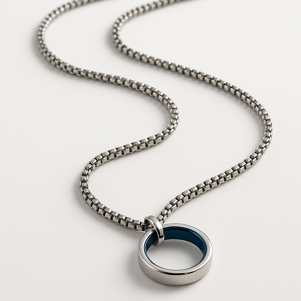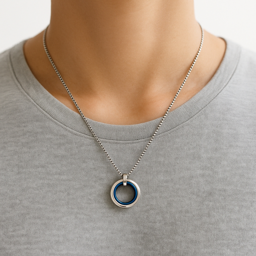 洗練されたモダンデザインの「ステンレスサークルペンダント(ブルーライン)」は、ミニマルでありながら確かな存在感を放つ一品。中央の深いブルーラインがアクセントとなり、クールで都会的な印象を与えます。素材には高品質のサージカルステンレス316Lを使用し、金属アレルギーに配慮した設計。変色や傷にも強く、長期間の使用でも美しい輝きを保ちます。男女問わず使いやすいデザインで、シンプルなスタイルにもカジュアルにもマッチ。ペアアイテムとしてもおすすめです。