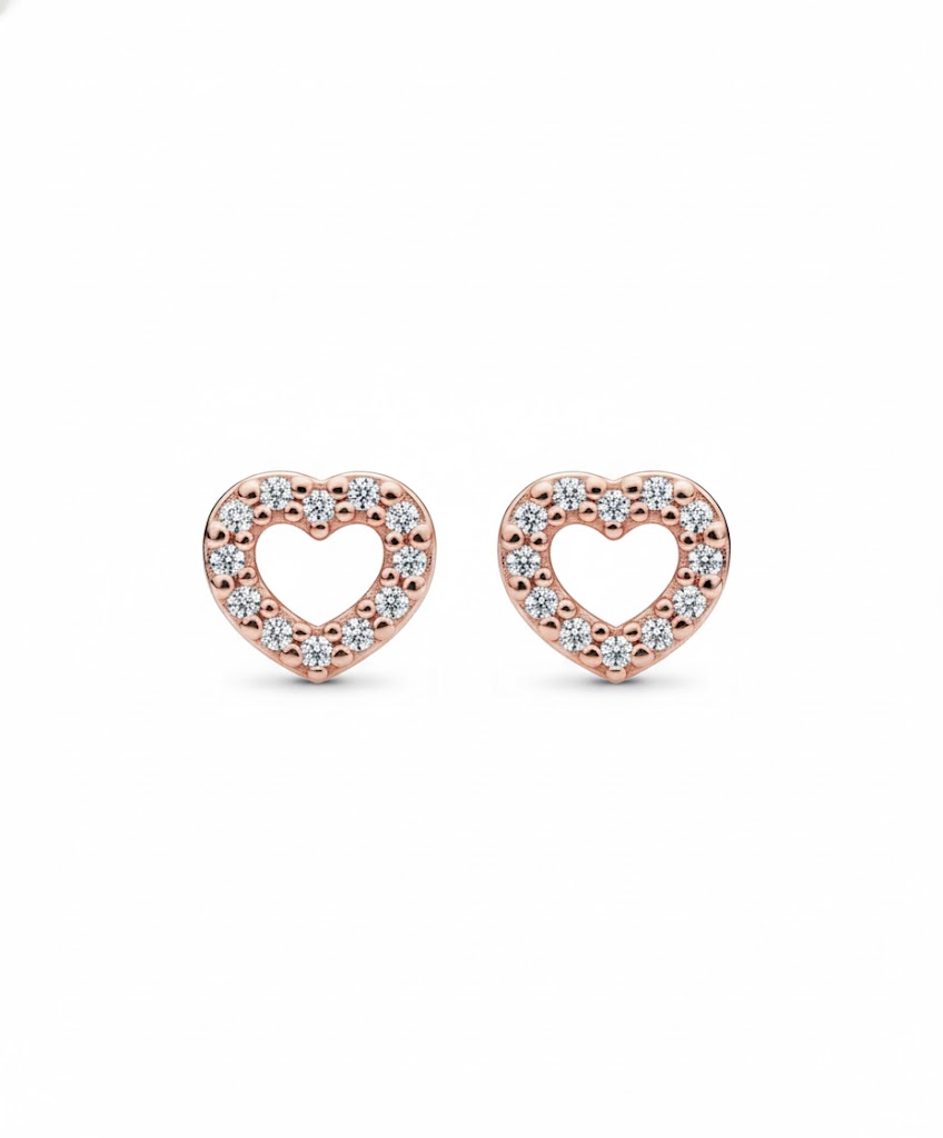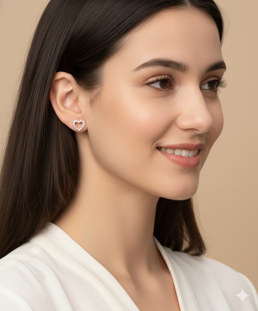 可愛らしさと上品さを兼ね備えたデザインで、耳元にやわらかな光をまとわせます。中央が抜かれたオープンハートは軽やかで、華奢ながらも高級感のある仕上がり。