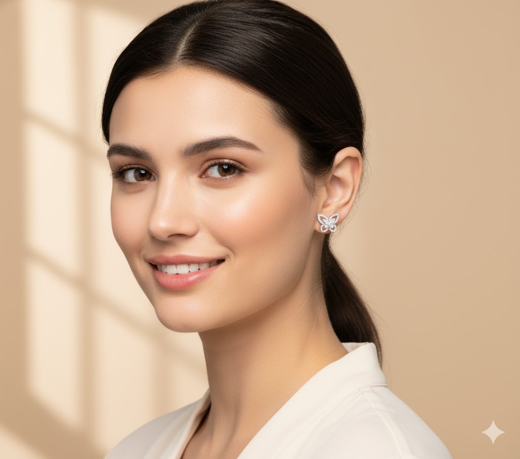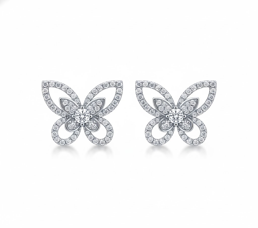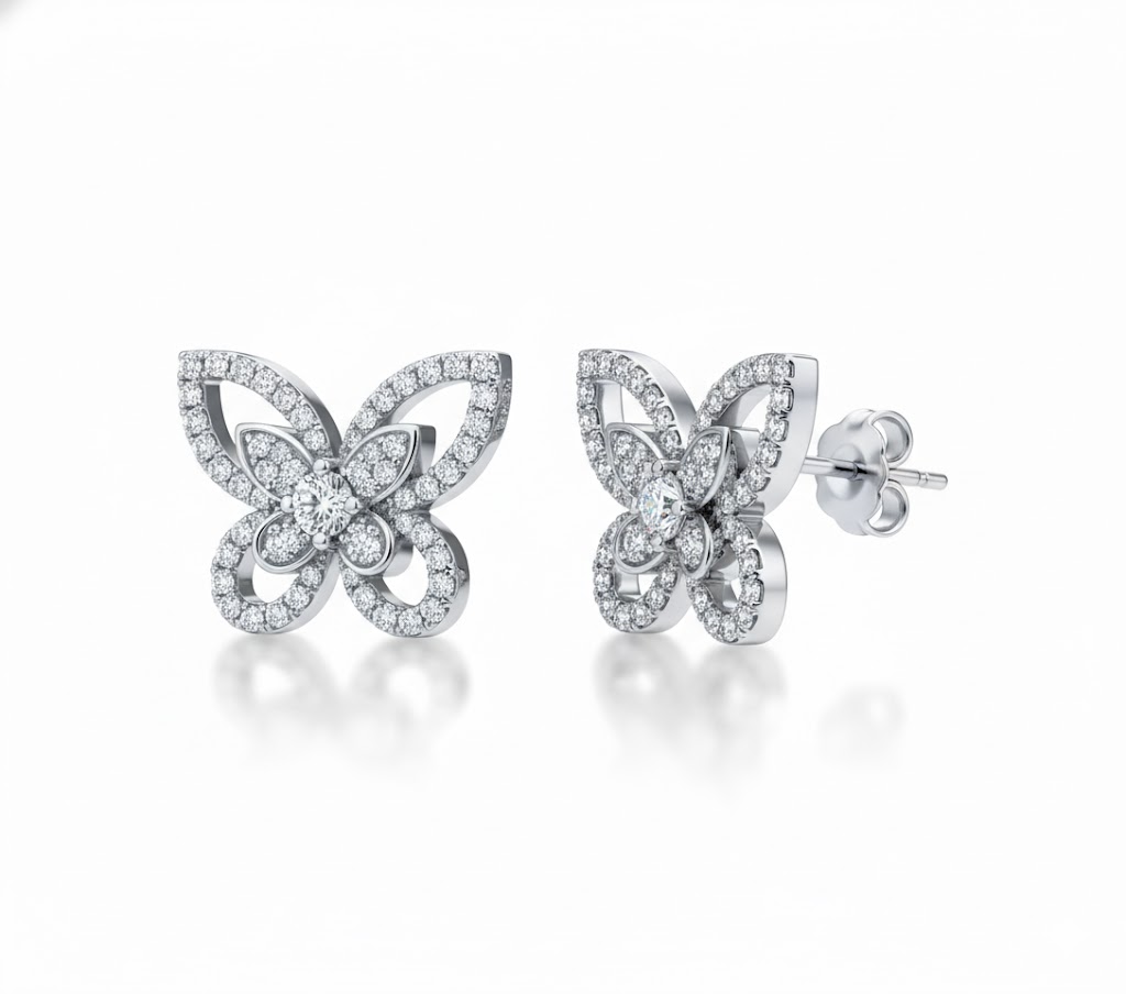 美しい蝶をモチーフに、緻密にカットされた天然ダイヤモンドを贅沢にあしらったプラチナピアス。