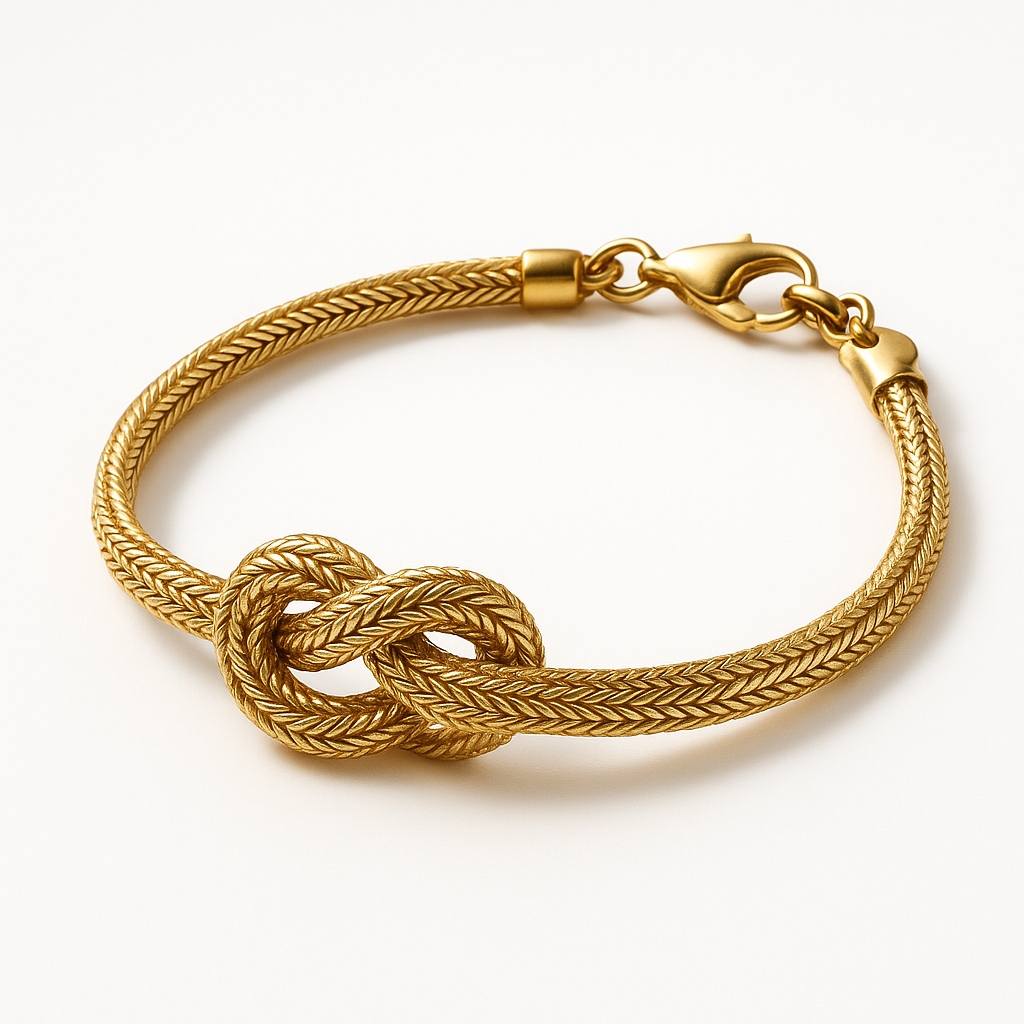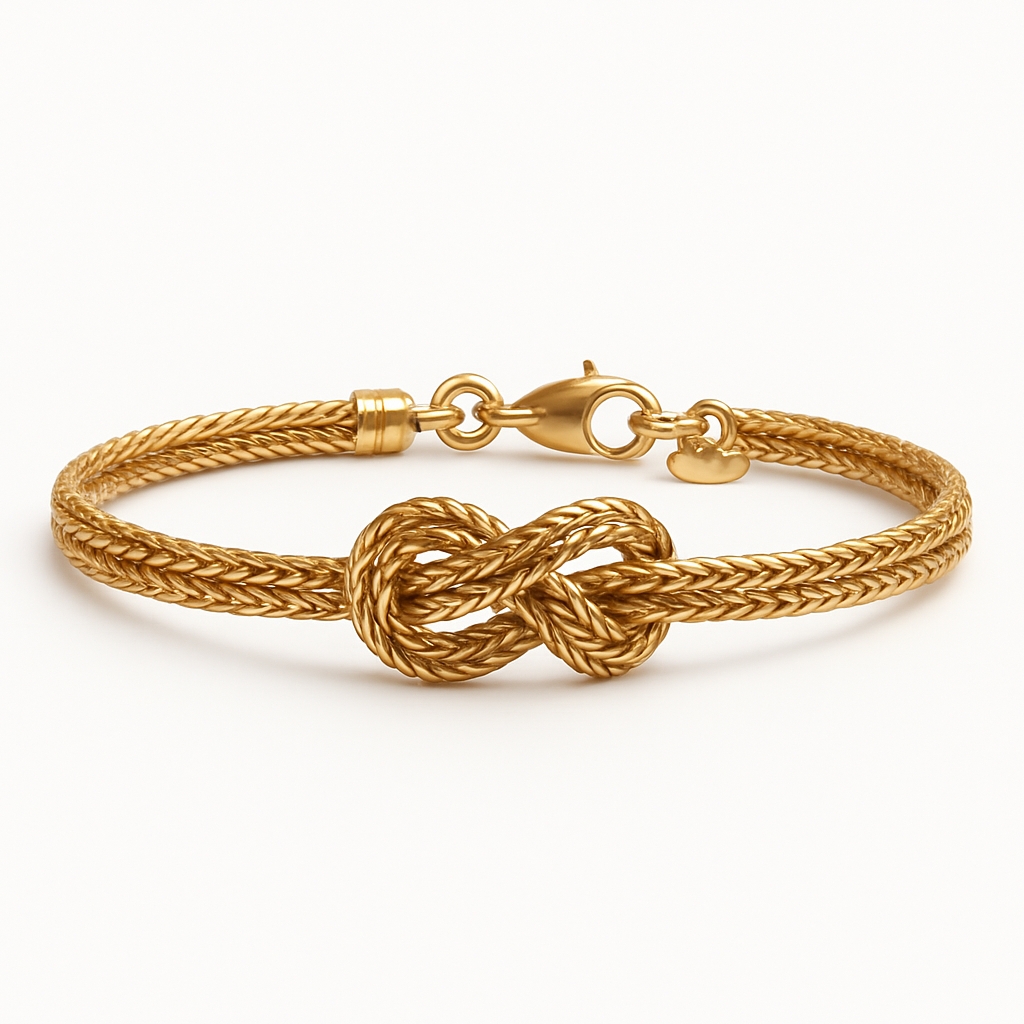 永遠の絆と愛を象徴する“ラブノット”モチーフを、K18イエローゴールドで贅沢に仕立てたブレスレット。