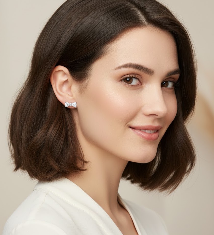 どの角度から見ても光を美しく反射する精緻なカッティングは、耳元を華やかに演出しながらも控えめで上品な印象を与えます。シンプルながらも個性のあるフォルムで、日常のスタイルにもドレスアップにも対応。ブライダルや記念日の贈り物にもふさわしい逸品です。
